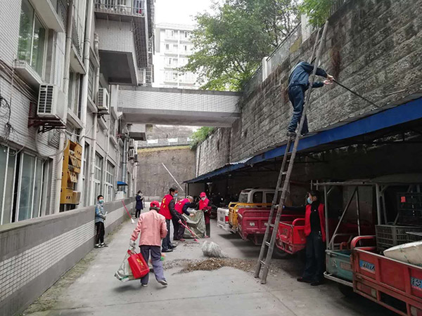 活动开始前,板仓社区党总支书记陈光远带领大家重温了入党誓词,并做了动员讲话。活动中为减少人员聚集,又能更好的发挥党员先锋模范作用,按照小区划分成3支党员卫生突击队和1支党员宣传小分队。党员卫生突击队分别对小区绿地、楼道、卫生死角、垃圾收集点等重点区域进行大扫除和病媒生物消杀,消除了病菌滋生隐患,为打赢疫情防控阻击战营造了良好环境。