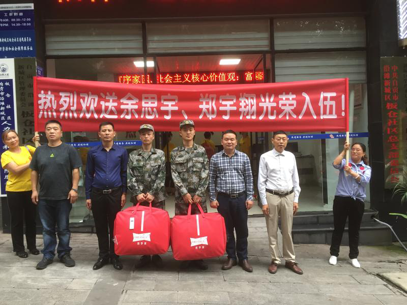 会后,板仓社区军鼓队鼓乐齐鸣,欢送即将踏上保家卫国征程的青年余思宇、郑宇翔,两位同志随着鼓乐声,浩浩荡荡地参加板仓社区举办的新兵欢送会,怀着激昂的心情,带上亲人、社区的祝福,踏上光荣的军队之旅。