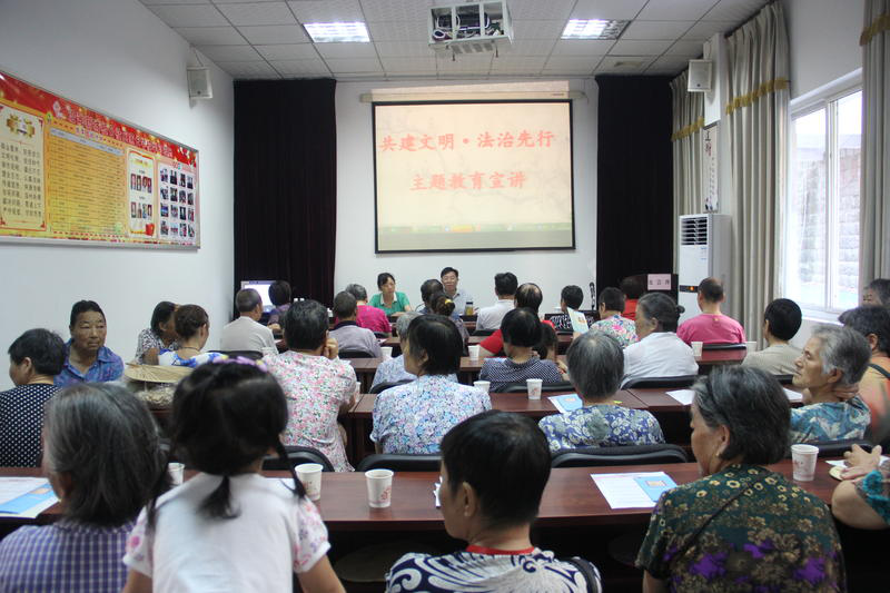 为我市创建全国文明城市营造良好的法治宣传氛围,提高党员干部法律素质和居民群众参与法治宣传教育的热情,2017年7月26日,板仓社区党总支组织开展以“共建文明·法治先行”为主题的法治教育宣讲活动,社区干部、党员、居民群众60余人参加学习会。