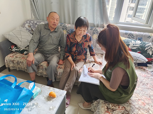 自贡市沿滩区板仓社区红白喜事服务中心开展的“金婚忆初心.家风永传承”项目”,通过前期的公开招募报名工作,机构社工联系社区相关工作人员,通过辖区居民小组长和网格员的协助,筛选符合要求报名的夫妻共25对。2022年3月15日上午,红白喜事服务中心的社工邹红英和居民小组长一同上门拜访收集辖区内的金婚老人的金婚故事,为金婚展示采集项目信息的工作。同时也为受访老人带去了小礼品。