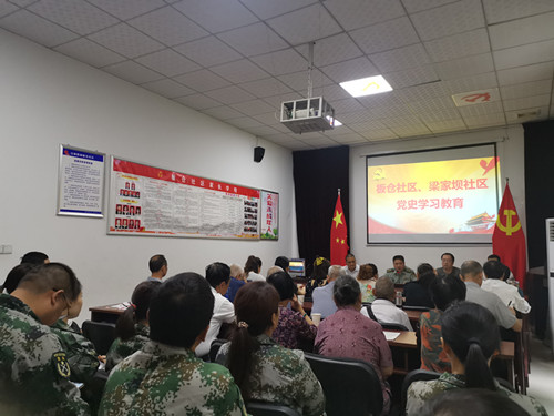 6月11日上午,卫坪街道板仓社区、梁家社区组织开展党史学习教育,沿滩区委常委、武装部政委向辉应邀讲党课。街道办副主任、武装部部长刘哲峰、社区党员干部、街道民兵等50余人参加学习。