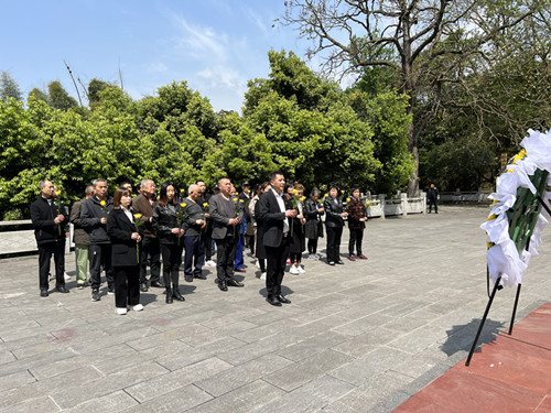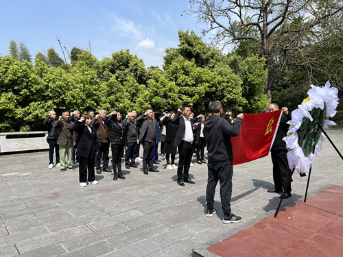 参观结束后,全体党员在吴老墓碑前,面向党旗,庄严伫立,举起右手,重温入党誓词。随后,在吴老墓碑前默哀致敬,并依次敬献鲜花,寄托对吴老的无限哀思。