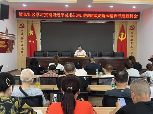 9月15日,板仓社区党委组织召开专题宣讲会,传达学习习近平总书记来川视察重要指示精神,聆听宣讲人员有社区全体“两委”班子成员、社区工作中、居民组长、网格员、党员及群众代表共计40余人参加。社区党委书记陈光远以题为“铭记殷殷嘱托、奋进新时代”为主题给全体社区干部进行了宣讲。